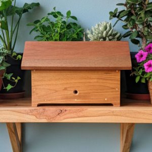 Uma peça de marcenaria fina produzida em Cumaru, uma madeira nobre e extremamente resistente. Com dimensões regulares, paredes de 4cm e apenas duas peças (corpo e tampa integral), é prática e resistente a invasores.