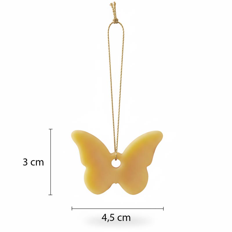 Sua Árvore de Natal ficará encantadora com este lindo enfeite em forma de Borboleta. Produzida com cera pura de Abelhas e um inconfundível cheirinho de mel, este é um enfeite delicado e criativo. A cera de abelhas é também um material perene, bastando armazenar bem fechadinha e longe de temperaturas altas, que vai durar por muito tempo!